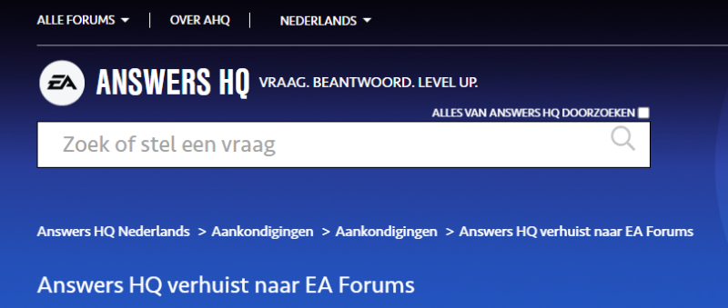 Hoewel er wordt gezegd dat er ook weer een Nederlandse optie komt op EA Forums, weet ik niet of dat gelijk bij de verhuizing zal zijn of pas later. Ik hoop natuurlijk direct bij de verhuizing zodat iedereen die dat wil, (ook) meldingen kan doorgeven in het Nederlands. Afwachten dus.