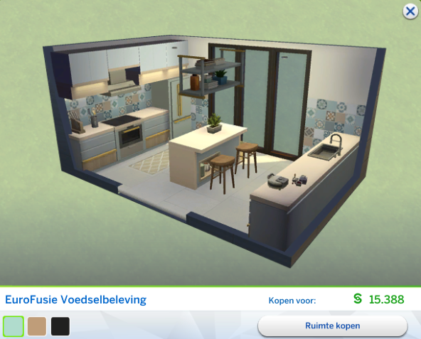 Bouwen/Kopen van dit pakket is natuurlijk helemaal gericht op de keuken van je Sims. Met maar liefst 3 nieuwe keukenapparaten (Mixer, Pizzaoven en Wafelijzer) en moderne nieuwe keukenkastjes kan je Sim aan de slag. Het Voedselkraampje biedt na alle inspanningen de mogelijkheid om het lekkers dat je Sim heeft gemaakt, te verkopen. Ook zijn er een paar leuke kleine keukenaccessoires en als je klikt op Nonna's Kookboek krijg je dezelfde opties als bijvoorbeeld klikken op een oven of koelkast.