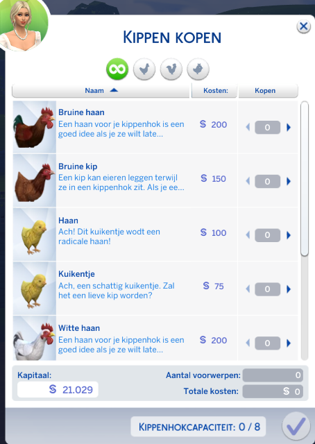 Als deze optie is uitgeschakeld (dus vinkje weghalen) dan zullen je kippen, koeien, lama's, vossen en konijnen niet ouder worden.