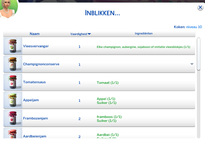 Je Sim zal het bereiden van ALLE maaltijden, bakken van gebak en inblikken alleen kunnen uitvoeren als je beschikt over de benodigde ingrediënten, want je hebt niet de optie om Verse ingrediënten gebruiken aan- of uit te zetten. Voordeel is wel dat er aan het bereiden verder geen kosten verbonden zijn.