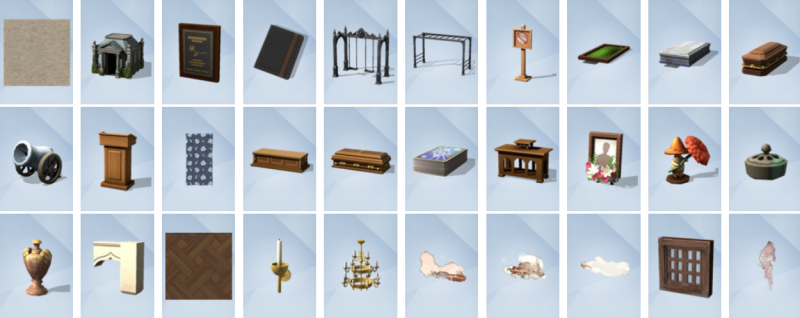 Tot ziens (voor nu). Verschillende Sims rouwen op verschillende manieren. Er zijn 4 soorten die aansluiten bij de Sims’ persoonlijkheden en hun relaties met de overledene. Rouwrituelen zijn aanpasbaar en niet-gescript, zodat je elk type evenement (of evenementen) kunt houden dat bij jouw verhaal past. In het leven kunnen Sims testamenten opstellen die kunnen worden gebruikt om erfstukken door te geven, voogden aan te wijzen voor overlevende afhankelijken, hun Simdollars te verdelen en meer. Sims kunnen de overledene eren met een gedenkteken met hun portret en door hun urnen te begraven in crypten of met aangepaste kisten en graven.