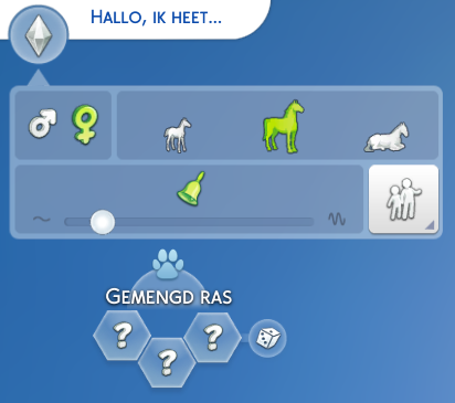 Helaas is het niet mogelijk om de familierelatie en de familiedynamiek tussen een S|im en een paard/veulen in te stellen. Deze band bouw je op door gameplay en niet in CAS. Alle Sims in een huishouden zijn automatisch 'baasje' van een paard.