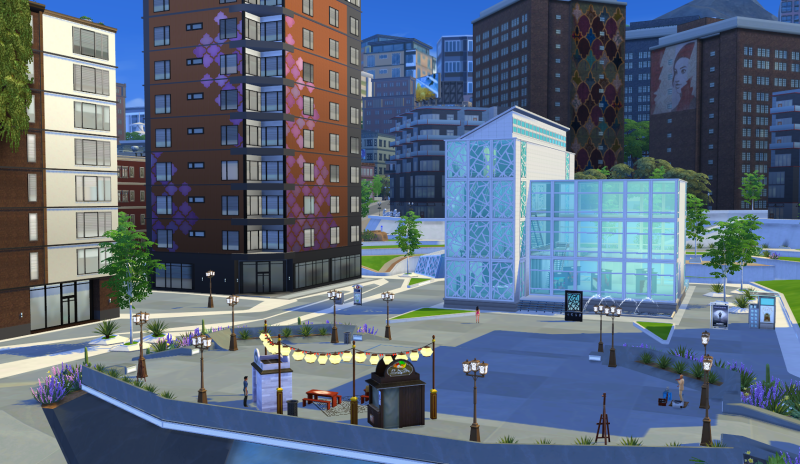 De stad en buurten zijn op zich prachtig gemaakt met hoge appartementsgebouwen, neonborden en reclamezuilen en allerlei andere dingen die horen bij een grote stad. Maar hoe fraai San Myshuno er ook uitziet, eigenlijk speelt alles zich af rond de pleinen in de 4 buurten en daaromheen is het allemaal decor en helaas niet speelbaar.