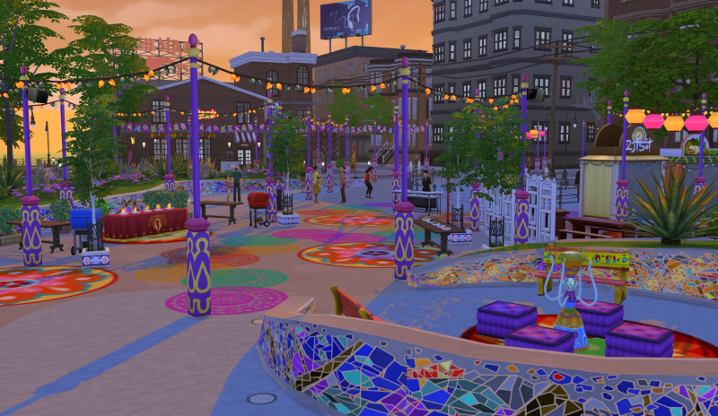 Op het plein in deze buurt vinden op zaterdag van 17.00 tot 1.00 uur, afwisselend, 2 festivals plaats: de ene week GeekCon wat helemaal in het teken staat van techniek en gaming en de andere week het Liefdesfestival voor de Sim die op zoek is naar (meer) romantiek.