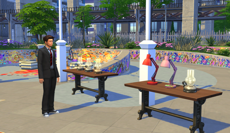 Als je Sims niet veel Simoleons te besteden hebben, kunnen ze in deze wijk op de Vlooienmarkt leuke vintage of retro meubels of voorwerpen voor een zacht prijsje op de kop tikken. Of ze kunnen een sneeuwbol (nieuwe huishoudcollectie) kopen of ruilen bij een van de kraampjes. Je Sim kan hier zelf ook een paar Simoleons verdienen. Stop bijvoorbeeld eigen gemaakte schilderijen, dubbele collecties of een paar boeken waar je op bent uitgekeken in je Sim’s inventaris en stal deze uit op een (speciale) muur (te koop in Kopen), tafel of kleed om ze te verkopen. Deze optie is ook te gebruiken in andere werelden en dat maakt het tot een leuk onderdeel van dit pakket.