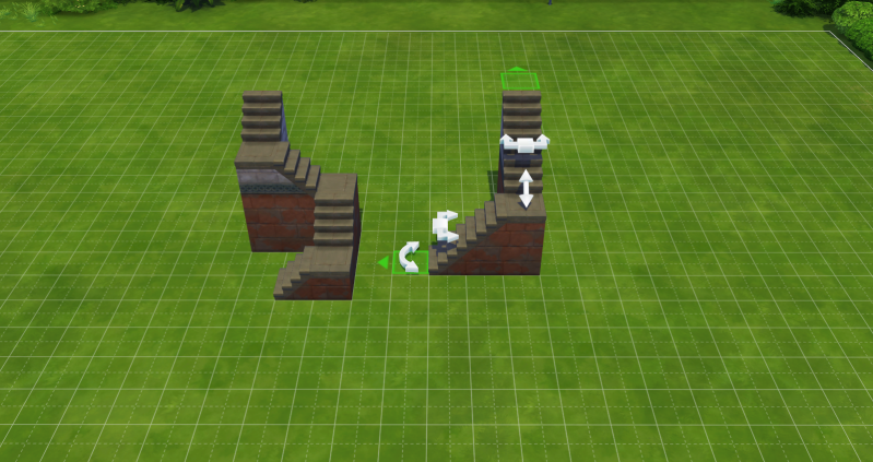 TIP: Kies eerst de breedte van de trap (dus 1 of meer vakjes breed) voordat je gaat draaien. Als je dit naderhand wilt wijzigen, zal je de trap opnieuw moeten 'bouwen' want zodra je gaat draaien ligt de breedte vast. Het is jammer dat je de hele trap op dezelfde breedte moet maken, want bij een 'grand staircase', zoals op het middelste voorbeeld hierboven, zou het best mooi zijn als het onderste deel (wat) breder was dan de twee zijkanten.