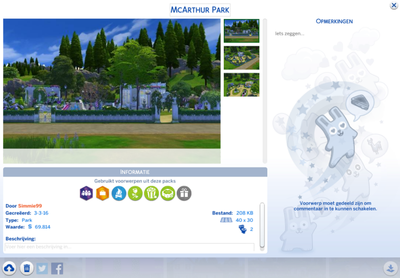 LET OP: de afbeeldingen van kavels/ruimtes/Sims die met de Tray Importer op de Galerie worden geplaatst worden door EA aangemerkt als CC. Als je dat geen probleem vindt, kun je het programma gerust hiervoor gebruiken.